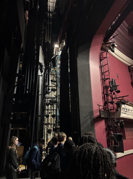 Next on the tour was the stage itself, where pupils spent some time to learn about the set for 'An Inspector Calls' - some parts of which are nearly 30 years old, originally used for the production in 1996! The group had an opportunity to ask lots of brilliant questions, to which the guide commented that "[we were] the best tour group he had had in a very long time" due to their attentiveness and desire to learn! They are very excited to return to see an actual production.