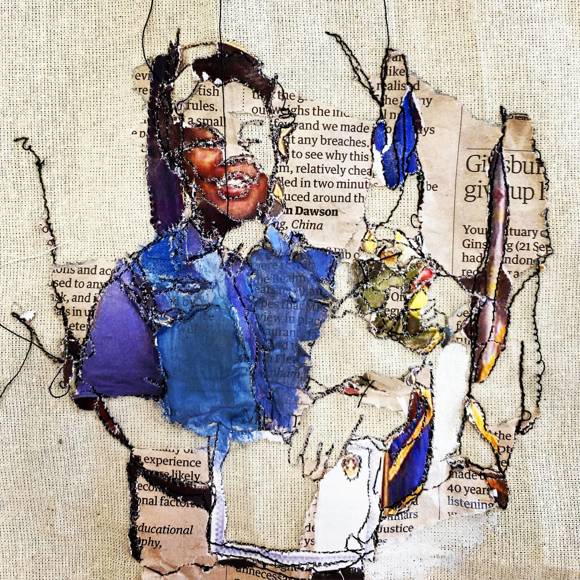 Mazie Howes' mixed media, stitched and painted portrait of the late Breonna Taylor and this piece was accepted for the online exhibition.She demonstrates a high level of skill and sensitivity in reflection of the Black Lives Matter (BLM) movement.