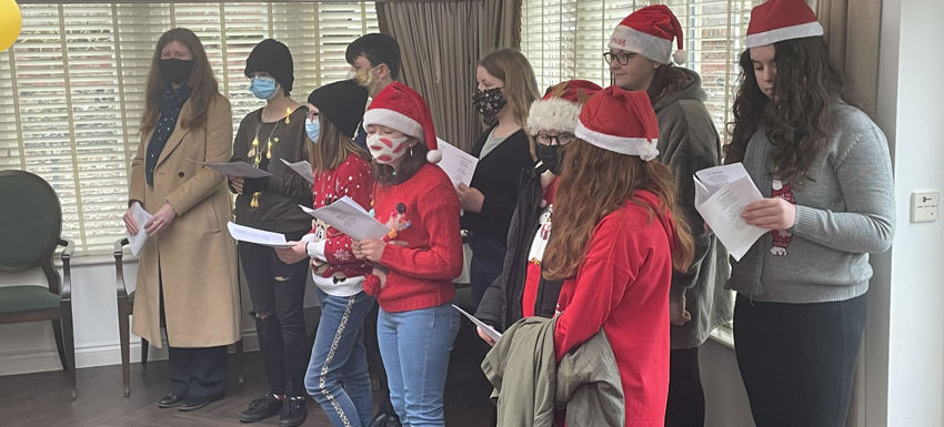 The ensemble sang several traditional hymns including Jingle Bells and were even joined by Lucy Austin, the Head of School, who sang along, alongside many of the residents. The group was filmed by the BBC, as part of their community outreach and each child who took part received a gift.